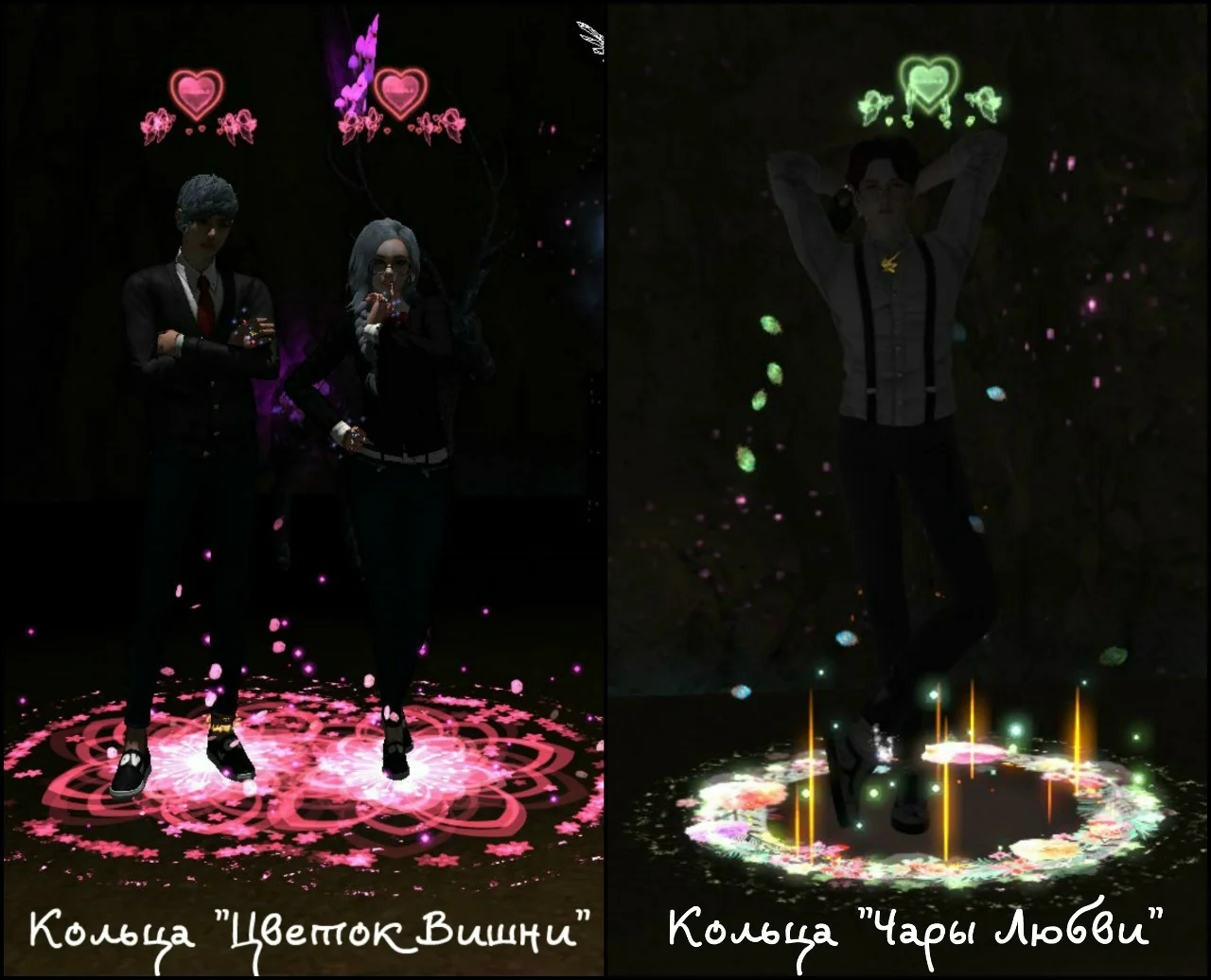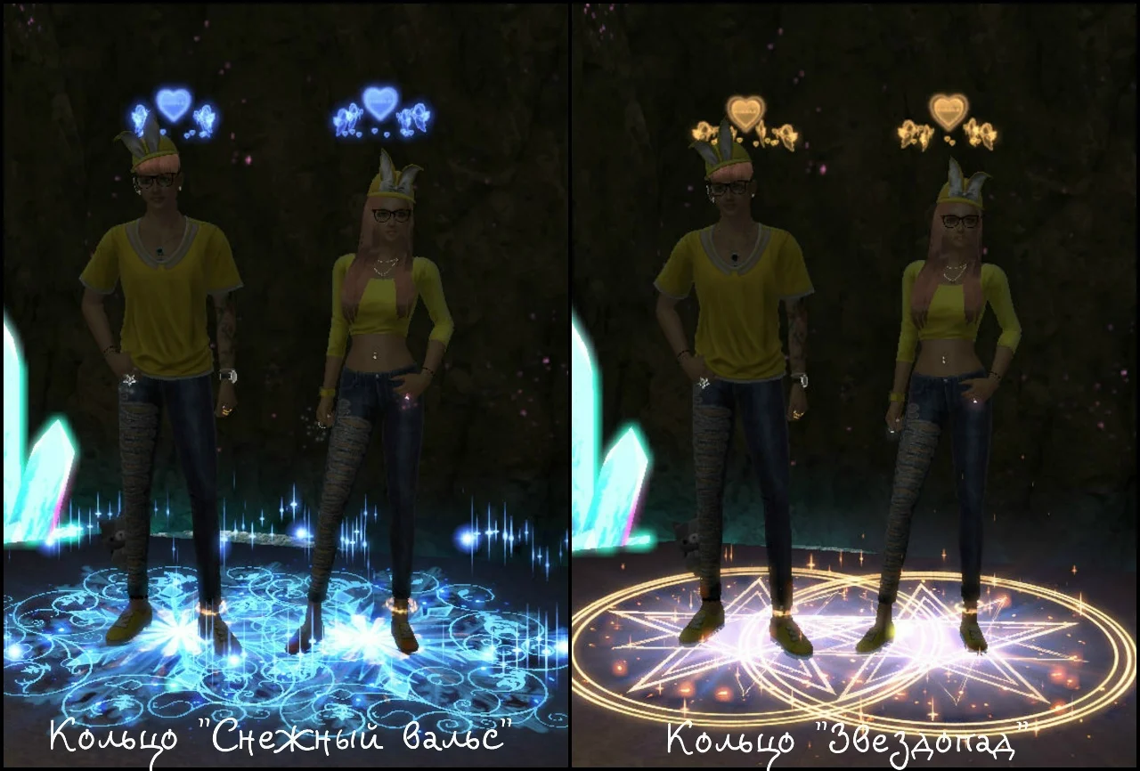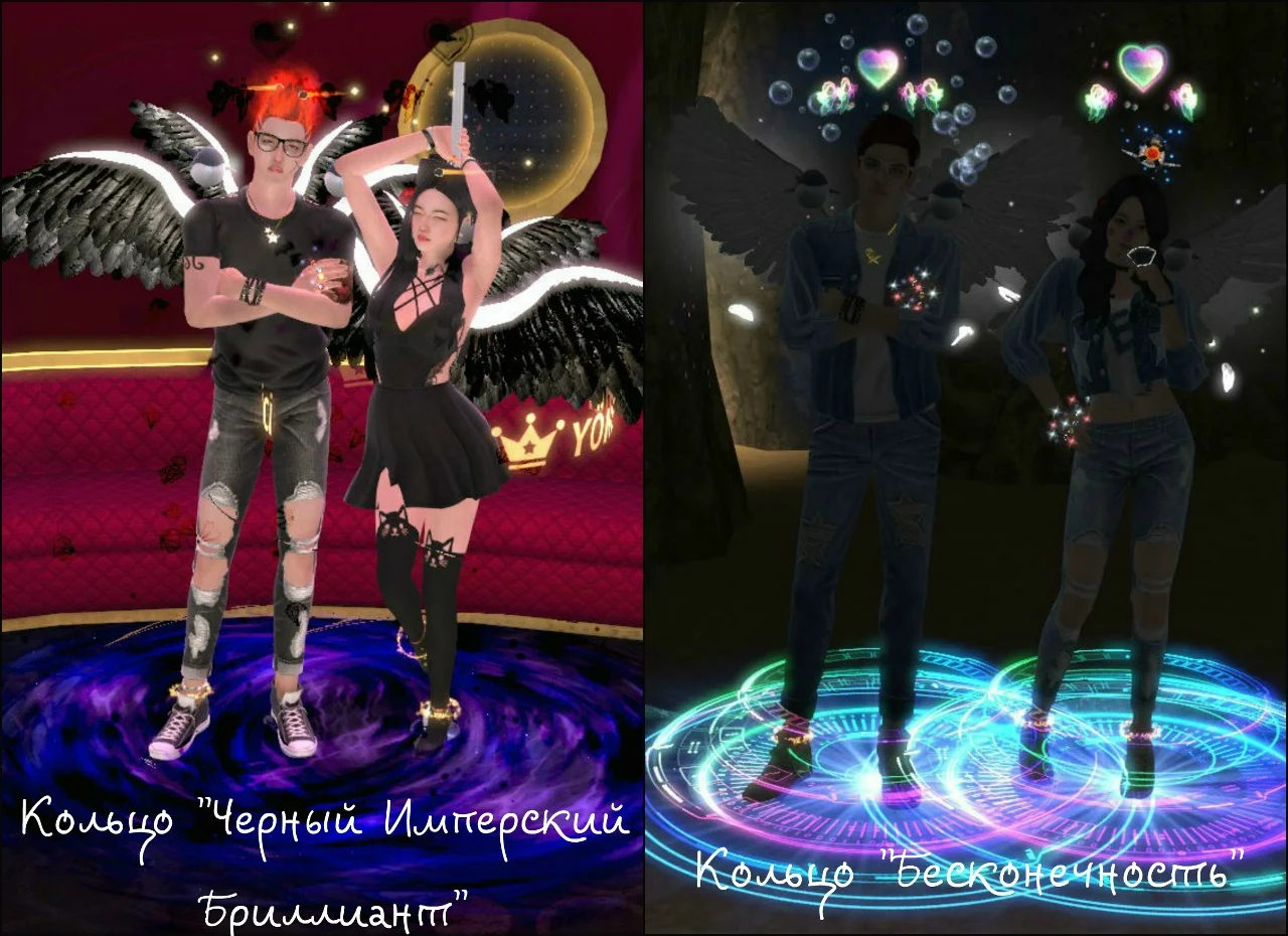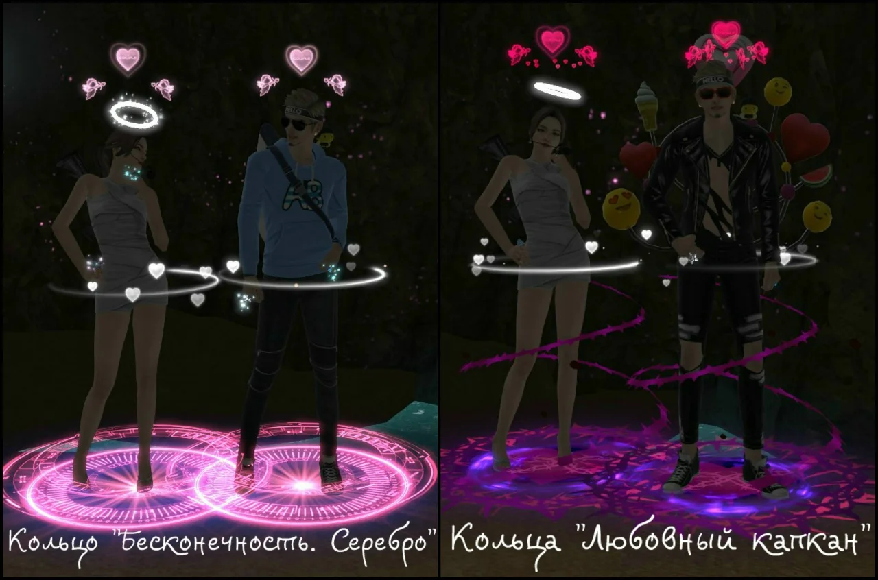 В зависимости от уровня пары вы можете менять кольца (4 уровень, 8 уровень, 10 уровень). Каждое кольцо имеет свою ауру и в дальнейшем приобретается в парном магазине. Так же кольца влияют на количество очков опыта пары за танцы. При наличии разных колец, вы всегда можете сделать активным то кольцо, которое хотите, таким образом сменив и ауру вашей пары. Для этого необходимо войти в меню пары - кольца.
