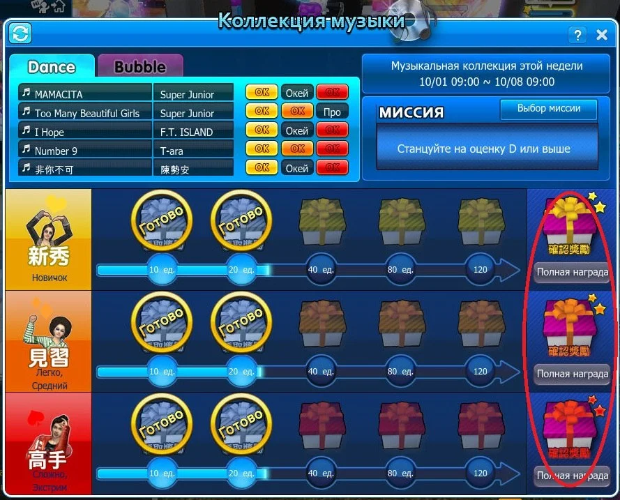 6. По ходу заполнения коллекции вы будете получать промежуточные подарки. Полученные отмечаются штампом “готово”.