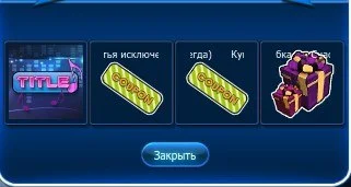 В коробках содержится: Титул, Купон на верх (вечно), Купон на низ (вечно), (Купон на верх (365 дней), Купон на низ (365 дней) - Корея), Коробка удачи.