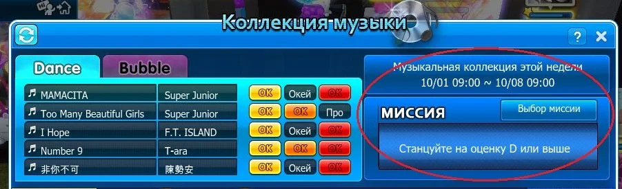 Такие задания как: Станцевать на оценку D, C, B, A, S - означают оценку по окончанию танца (в процентах она зависит от количества набранных стрелок, в бабле от точности пробела).